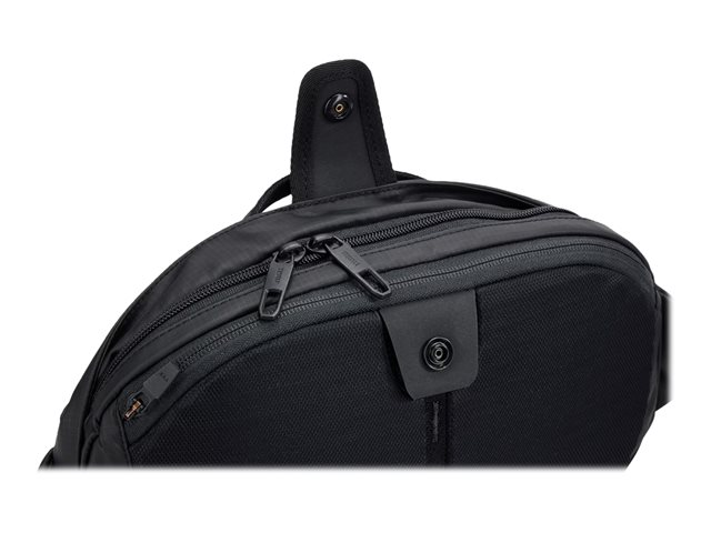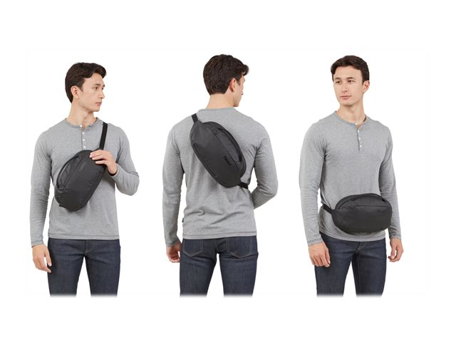 Compact, ce sac bandoulière, fabriqué à partir de matériaux recyclés avec protection et fonctionnalités antivol, accueille toutes vos affaires personnelles.