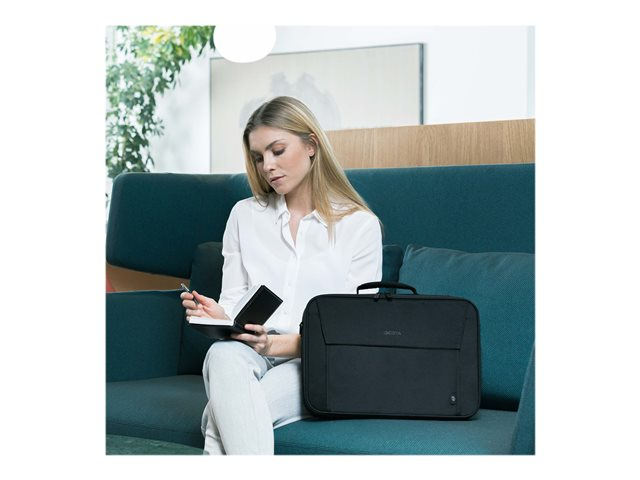 Le sac Clamshell Eco Multi BASE pratique protège votre ordinateur portable de manière optimale grâce à son compartiment rembourré. Les appareils à partir de 14-15.6" sont non seulement parfaitement sécurisés, mais aussi fixés par la sangle de serrage dans le compartiment. Une stabilité et une protection supplémentaires sont garanties par le cadre en fil métallique. Avec sa légèreté parmi les sacoches d'ordinateurs portables, l'Eco Multi Base garantit une mobilité flexible. Dans le compartiment avant pratique, vous trouverez suffisamment de place pour le smartphone ou d'autres accessoires mobiles tels que des câbles, des stylos ou des chargeurs qui doivent toujours être à portée de main. Le sac est confortable à porter, grâce aux poignées rembourrées en néoprène, et peut être attaché instantanément au chariot, grâce à une bande intégrée. En outre, le sac peut également être transporté grâce à la bretelle réglable. Cela fait de l'Eco Multi BASE le sac parfait pour tous ceux qui se déplacent souvent et qui souhaitent soutenir la réutilisation raisonnable des bouteilles en PET grâce à une solution de transport écologique.