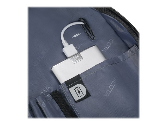 Le compartiment principal refermable à clapet protège votre ordinateur portable de 14 à 15,6" avec un rembourrage complet en mousse haute densité (HDF) et Nylex souple, à un cadre renforcé de métal et à une fixation fiable avec une sangle. Votre tablette jusqu'à 10,5" est également casée en toute sécurité dans sa poche spéciale rembourrée. La poche avant spacieuse permet de mettre de l'ordre avec son compartimentage fonctionnel pour smartphone, batterie externe, stylos et autres accessoires. Un compartiment supplémentaire zippé sur la partie inférieure avant du sac permet de ranger le chargeur et les câbles. La poignée de forme ergonomique et rivetée, une sangle avec renfort rembourré aux épaules réglable en longueur ainsi que la lanière de fixation trolley au dos permettent une utilisation flexible et garantissent un transport confortable.