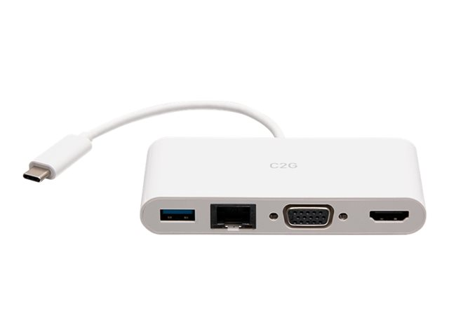 C2G USB C to HDMI, VGA, USB A & RJ45 Adapter