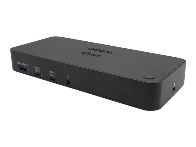 Description du produit DICOTA i-tec - station d'accueil - USB-C - HDMI, DP - 1GbE Type de Produit Station d'accueil Interface de station d'accueil USB-C Interfaces vidéo HDMI, DP Dimensions (LxPxH) 19.1 cm x 8.5 cm x 3.1 cm Poids 340 g Couleur Noir Réseaux Gigabit Ethernet Alimentation Adaptateur secteur 96 Watt Alimentation fournie Garantie du fabricant Garantie de 2 ans -