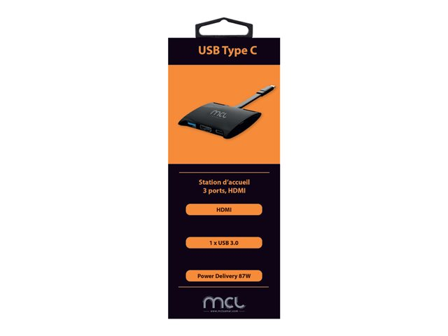Station d'accueil USB Type-C qui permet de brancher rapidement des périphériques sur un ordinateur portable. Son format réduit lui permet d'être facilement transportable. Ces 3 ports peuvent être utilisés simultanément et sa prise Power Delivery permet la charge rapide d'un laptop. Cette station est compatible avec les appareils équipés de prise USB Type-C prenant en charge la vidéo, les data et la charge.