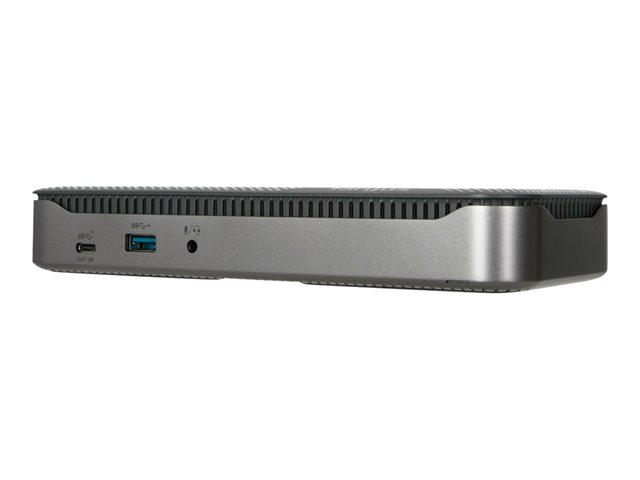 Compacte et discrète, cette station d'accueil pour quatre moniteurs, petite mais puissante, est également dotée de ports supplémentaires qui vous permettent de rester connecté et de ne pas encombrer votre espace de travail. De l'USB-C à l'USB-A en passant par les ports audio et Ethernet, vous aurez vraiment tout ce qu'il vous faut.