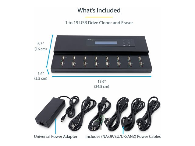 Ce duplicateur et effaceur USB vous permet de cloner ou d'effacer jusqu'à 15 clés USB sans connexion à un ordinateur hôte. Cela signifie que vous pouvez travailler plus efficacement et gérer de plus grandes quantités de clés USB, en moins de temps et avec moins d'efforts. Le duplicateur et effaceur USB autonome est parfait pour les informaticiens et les administrateurs système travaillant dans des environnements d'entreprises, d'établissements scolaires, marketing ou commerciaux.
