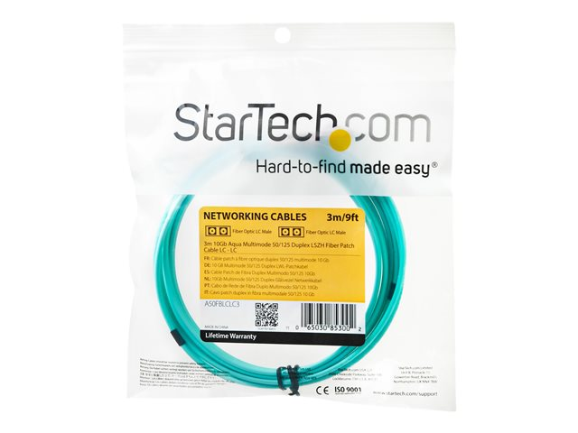 10 Gb Aqua - Multimode Duplex 50/125 - LSZH - LC/LC - OM3 - LC to LC Fiber Patch Cable - Cordon de raccordement - LC multi-mode (M) pour LC multi-mode (M) - 3 m - fibre optique - duplex - 50 / 125 microns - OM3 - sans halogène - turquoise - pour P/N: J9152AST, MASFP10GBSR, SFP10GBLRMST, SFP10GBSRST, SFP10GSRSST, SFP10GSRXST