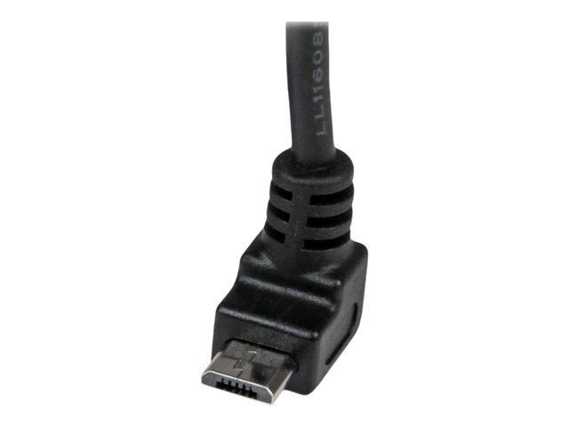 A vers Micro B coudé 90° vers le haut - Câble USB Micro B Angle Coude vers le haut - Noir 2m - Câble USB - Micro-USB de type B (M) pour USB (M) - USB 2.0 - 2 m - connecteur à 90°, moulé - noir