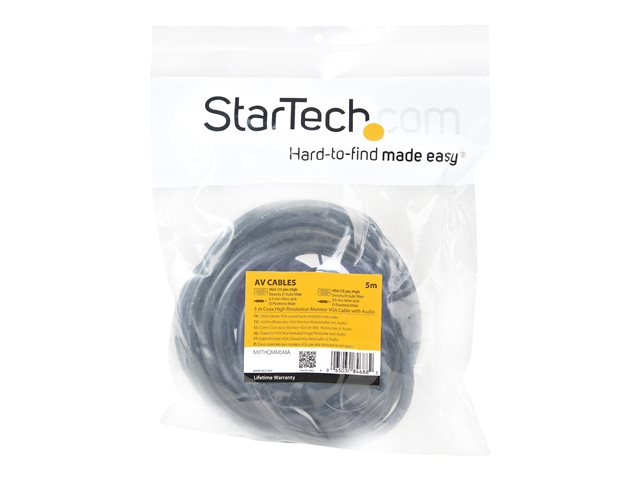 Ce câble VGA de 5 mètres (câble VGA avec audio) bénéficie de la garantie à vie StarTech.com.
