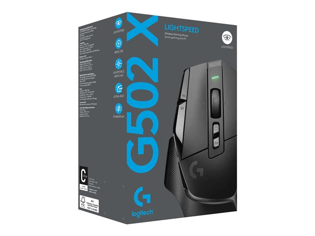 La souris G502 X LIGHTSPEED est revisitée et réinventée avec les technologies de jeu innovantes, et notamment avec les switchs hybrides LIGHTFORCE, la technologie sans fil LIGHTSPEED de qualité professionnelle, et le capteur HERO 25K. La souris G502 X LIGHTSPEED est également compatible avec POWERPLAY, pour ne jamais être à court d'énergie.