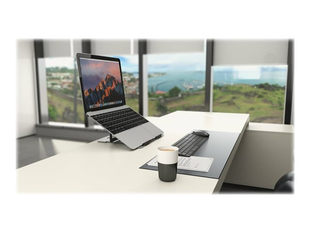 Facilement transportable et fabriqué en aluminium durable et léger, le rehausseur Easy Riser Aluminium accepte les ordinateurs portables jusqu'à 16'' et offre 6 niveaux de réglage de la hauteur et de l'angle pour une visualisation optimale. La conception ouverte du rehausseur améliore la circulation de l'air et le refroidissement de l'appareil.