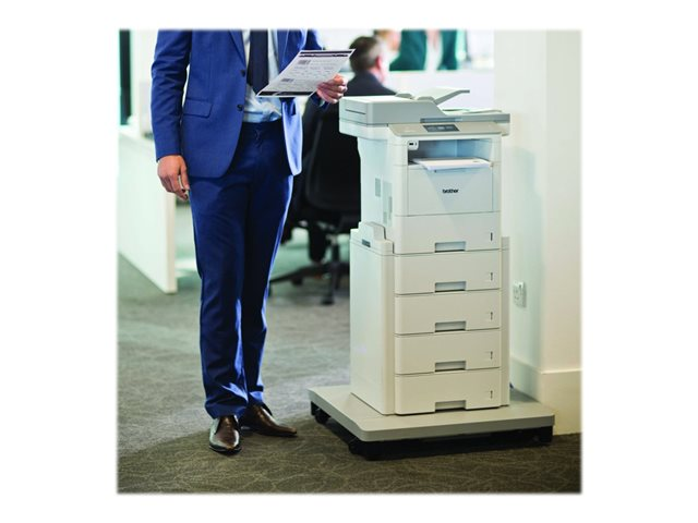 Cette unité papier de 4 tiroirs papier est dotée d'un socle à roulettes et des pieds ajustables.