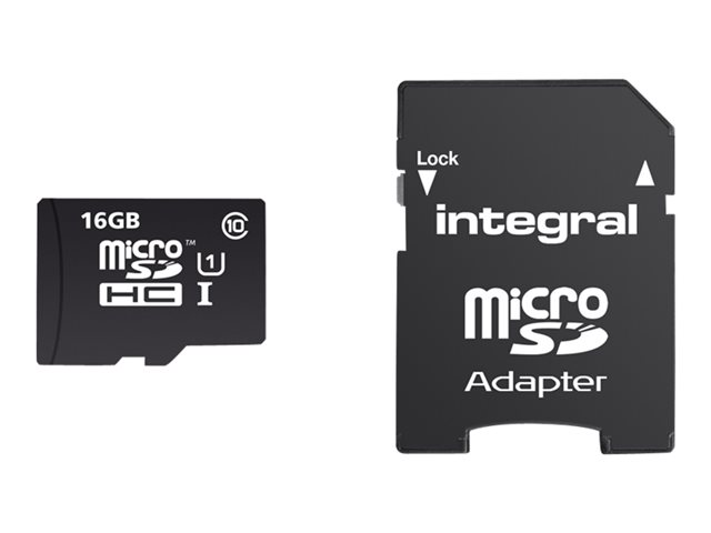 Description du produit Integral UltimaPro - carte mémoire flash - 16 Go - microSDHC UHS-I Type du Produit Carte mémoire flash Format Carte de mémoire microSDHC UHS-I Capacité de stockage 16 Go Indice de vitesse UHS Class 1 / Class10 Adaptateur mémoire fourni Adaptateur microSDHC - SD Garantie du fabricant Garantie de 5 ans -