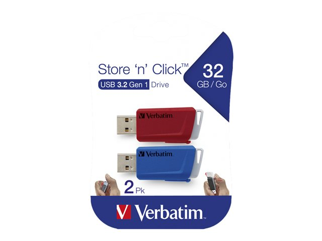 Clé USB - 32 Go - USB 3.2 Gen 1 - bleu, rouge (pack de 2)