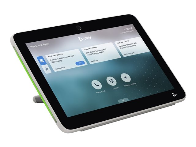 L'écran de commande tactile Poly TC10 rend les réunions plus productives et permet aux utilisateurs de planifier facilement des espaces de travail et des salles de conférence.