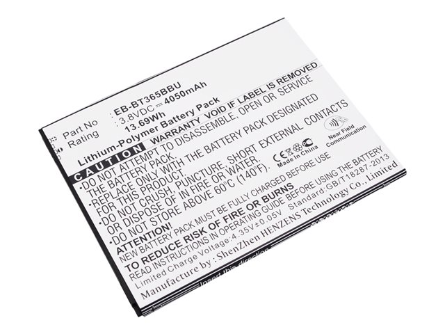 Description du produit DLH batterie - Li-pol Type de Produit Batterie Poids 71 g Batterie Lithium-polymère - 4700 mAh - 18 Wh Nom de la batterie du fabricant Samsung EB-BT365BBE, Samsung EB-BT365BBU, Samsung EB-BT365BBC, Samsung EB-BT365B, Samsung EB-BT365BBEBWW, Samsung EB-BT365BBUBUS Garantie du fabricant 1 an de garantie Conçu pour Samsung Galaxy Tab Active, Tab Active2 -