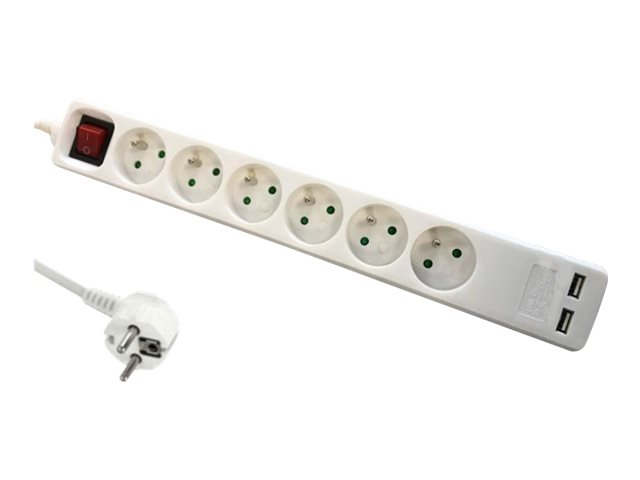 3680 Watt - entrée : alimentation - connecteurs de sortie : 6 (2 x USB, 6 alimentations) - 1.4 m cordon - blanc