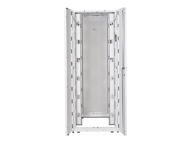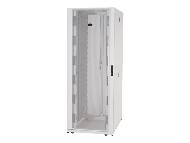 Armoires informatiques riches en fonctionnalités optimisées pour l'architecture en rangées InfraStruxure, la gestion des câbles, la distribution d'alimentation ainsi qu'une circulation d'air optimale.