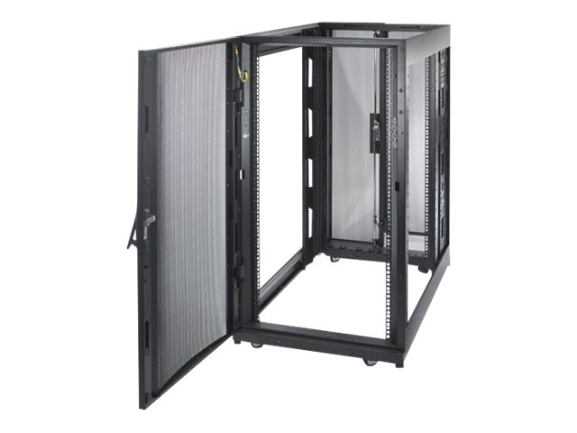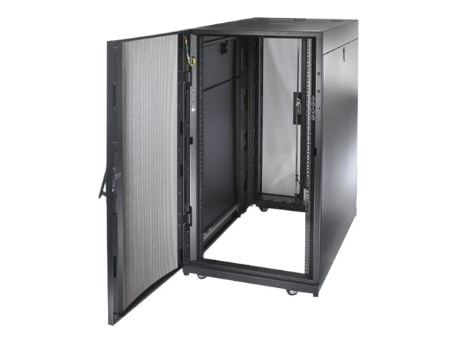 Armoires informatiques riches en fonctionnalités optimisées pour l'architecture en rangées InfraStruxure, la gestion des câbles, la distribution d'alimentation ainsi qu'une circulation d'air optimale.