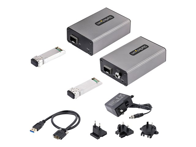 StarTech.com 2-Port USB 3.0 Extender over OM3 Multimode Fiber, LC/LC, 2x 5Gbps USB-A Hub, 350m (1150ft) Range, Durable USB Fiber Optic Extender, Incl. 2x 10G MMF SFP+ modules