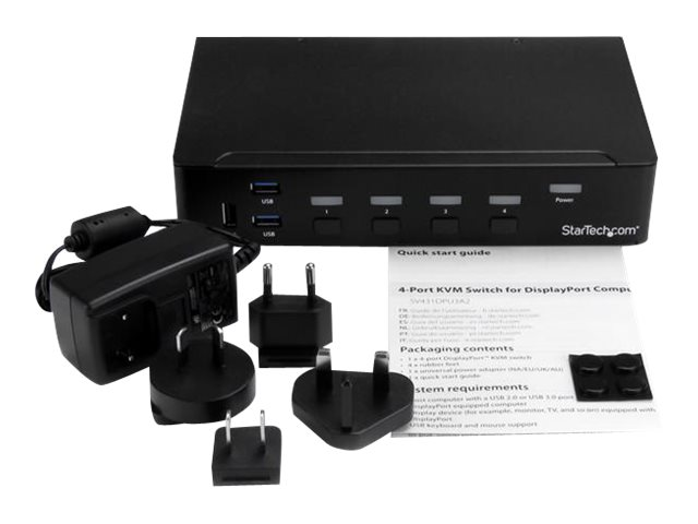 Commutateur écran clavier souris DP avec hub USB 3.0 intégré - 4K 30 Hz (SV431DPU3A2) - Commutateur écran-clavier-souris/USB - 4 x KVM / audio / USB + 3 x SuperSpeed USB - 1 utilisateur local - Montable sur rack - CA 120/230 V / CC 9 - 12 V - pour P/N: SV431RACK