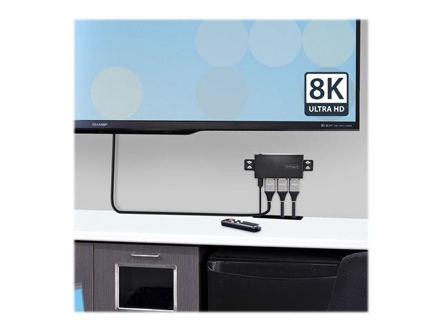 StarTech.com 2-Port 8K HDMI Switch, HDMI 2.1 Switcher 4K 120Hz/8K 60Hz UHD, HDR10+, HDMI Switch 2 In 1 Out, Auto/Manual Source Switching, Remote Control and Power Adapter Included