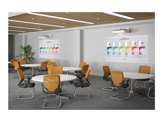 Pesant seulement 12,3 kg, il est portable et l'application Epson Setting Assistant facilite et accélère l'installation. La solution d'affichage idéale pour des salles de différentes tailles, combinée à des options d'installation flexibles.